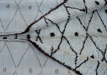 This vintage Azilal rug carries the quiet elegance of Morocco’s High Atlas weaving tradition. Handwoven by an Amazigh women, it reflects a heritage where rugs were first created for domestic life, embodying protection, fertility, and tribal identity.
