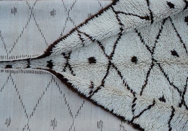 This vintage Azilal rug embodies the essence of Berber minimalism, where symbolism and geometry merge into a refined, timeless design. Handwoven from natural wool in the High Atlas Mountains, it radiates both purity and meaning.