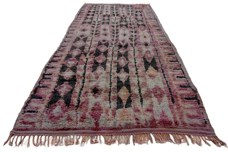 From the remote Aït Bou Ichaouen tribe comes this striking vintage Talsint rug, a piece that captures the raw poetry and spirit of its origin. True to the weaving style of this secluded eastern Moroccan region, the rug features a loosely knotted, shaggy pile with a deeply textural feel.