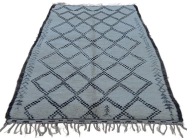 A very tribal spirited vintage Beni Ouarain with a field in natural ivory and bold patterning in charcoal. The composition begins with a row of broken lozenge motifs, fragmented yet intentional and shifts into a reimagined lozenge design that momentarily connects with its predecessor before diverging into a new direction. This kind of deliberate redirection is a hallmark of Berber artistry, often mistaken for a mistake, it is, in fact, a narrative choice, a symbolic transition to a new chapter.
